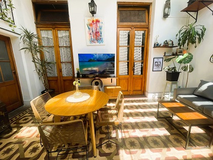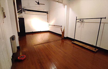 Salon de 8 x 4mts con piso de madera pinotea, barra corporal y ambiente climatizado. Tenemos sillas para 15 personas y mesas plegables de 60x60cm. Equipada con audio via wifi, iluminación con diversas opciones y además contamos con una sala de espera con servicio de cafetería.