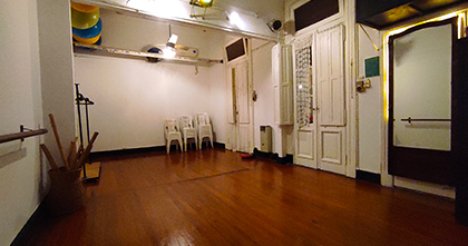 Salon de 8 x 4mts con piso de madera pinotea, barra corporal y ambiente climatizado. Tenemos sillas para 15 personas y mesas plegables de 60x60cm. Equipada con audio via wifi, iluminación con diversas opciones y además contamos con una sala de espera con servicio de cafetería.